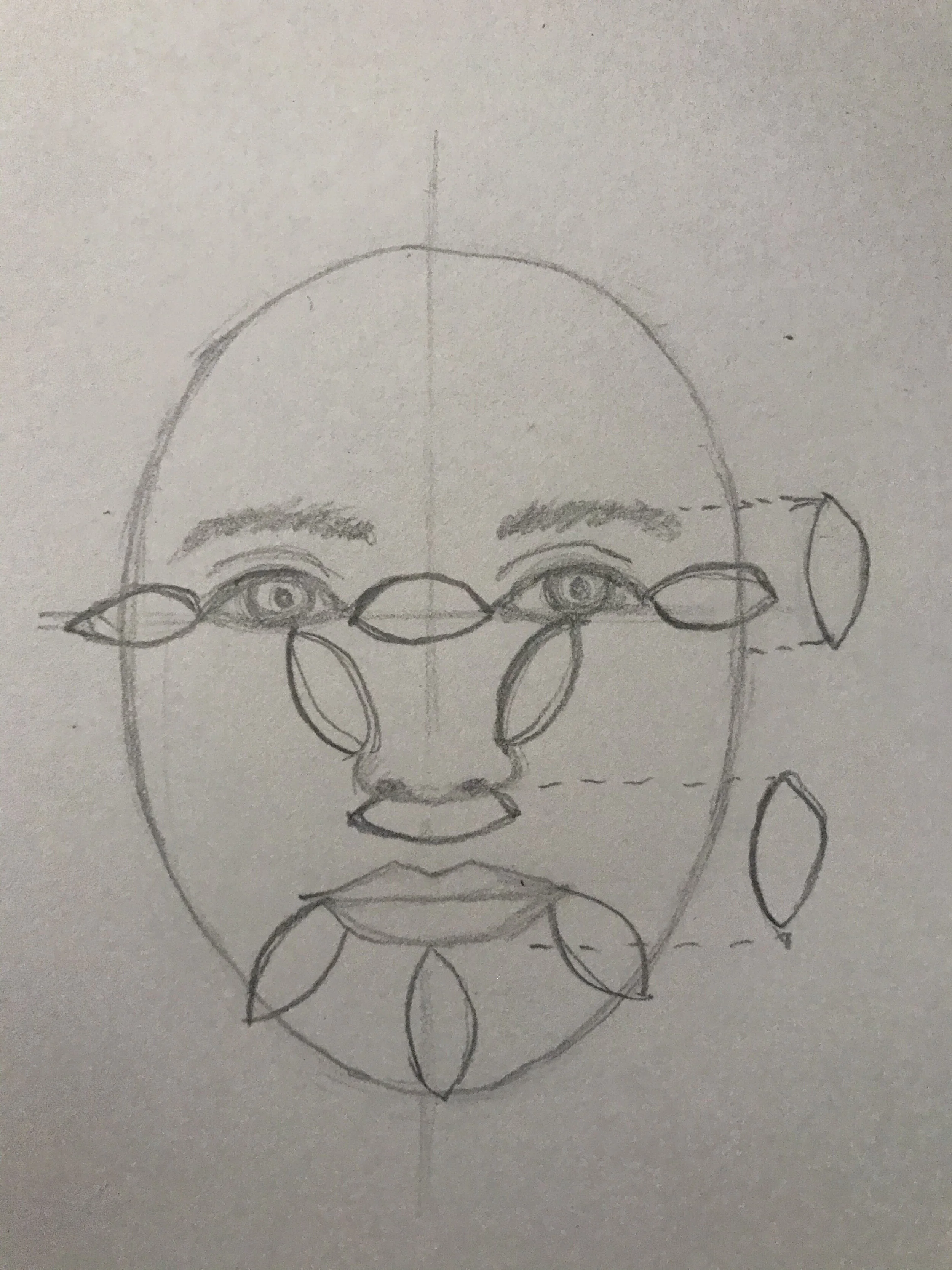 Proportions using eye-length as the unit of measure.